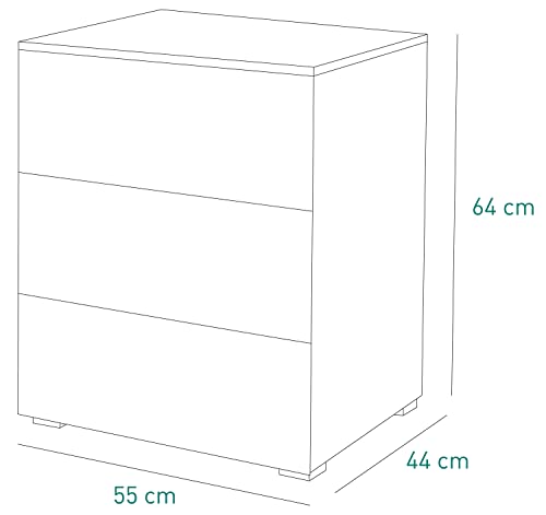COMPOSAD | Comodino della Linea PRIVILEGIO con 3 Cassetti, senza Maniglie, Comodino Bianco Camera da Letto, (LxAxP) 55x64,20x44 cm, Bianco Laccato, Made in Italy