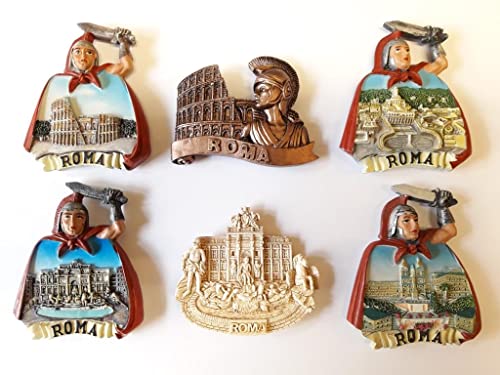 COMPOSIZIONE 4D - 6 PEZZI DI CALAMITE MAGNETE PER FRIGO SOUVENIR DI ITALIA ROMA Souvenir From Italy Rome