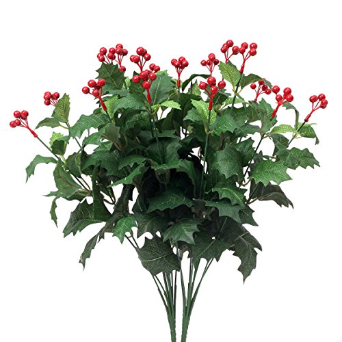 2 composizioni floreali Amkun artificiali con gambi di bacche di agrifoglio e foglie natalizie, decorazione per feste in casa Green