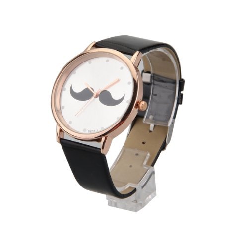 Compre show Orologio al Quarzo Barba Cinturino in Cuoio Nero Moda