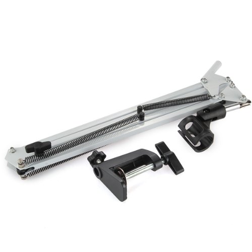 - ogni braccio misura 15,75" (400mm) in lunghezza e può essere estesa fino a 31,50" (800 mm) in lunghezza, come si preferisce. Le braccia a doppia staffa aggiungono forza. Il microfono si svolge in modo sicuro.