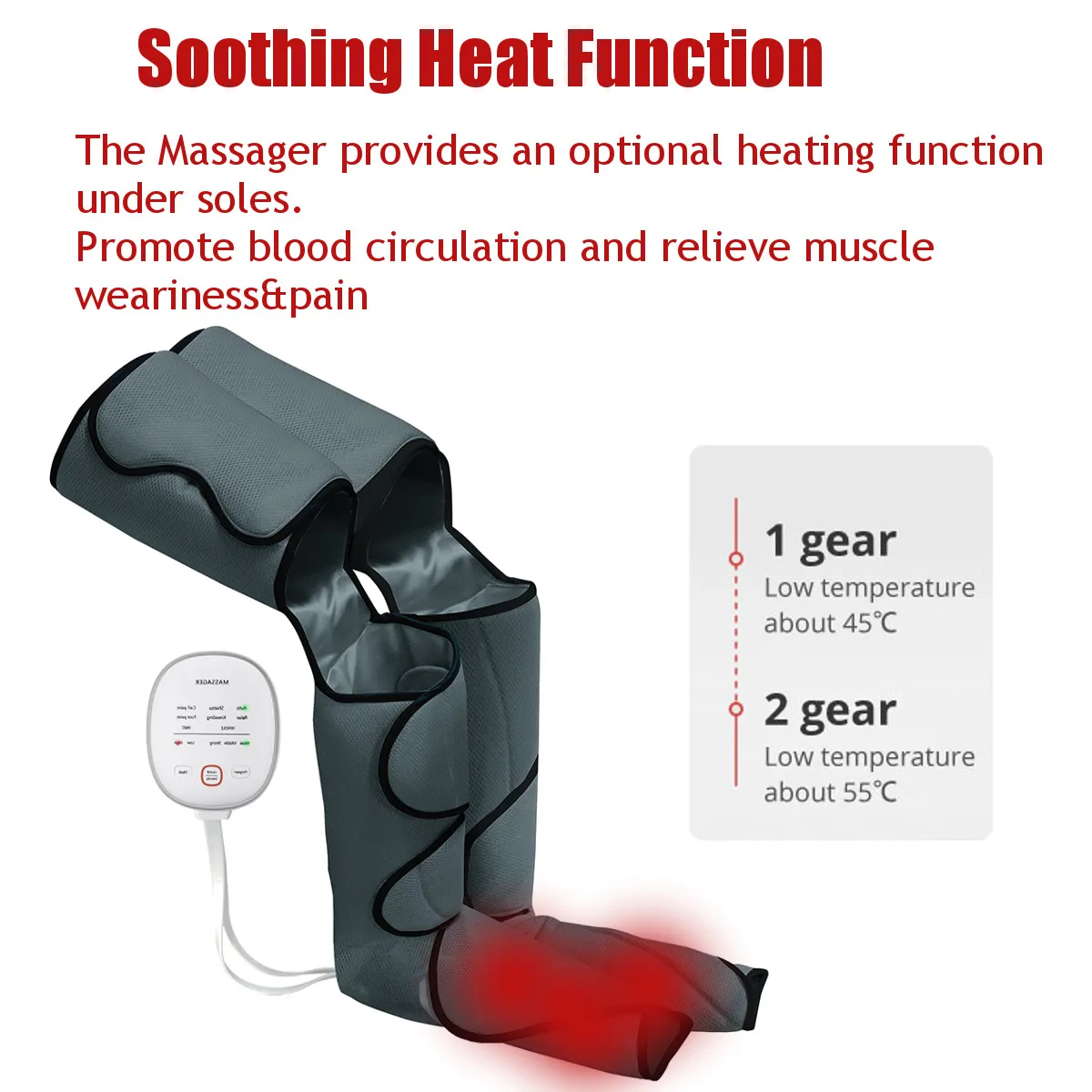 Air Compression Massager Heated for Foot and Calf Thigh Circulation with Handheld Controller 2 Modes 3 Intensities