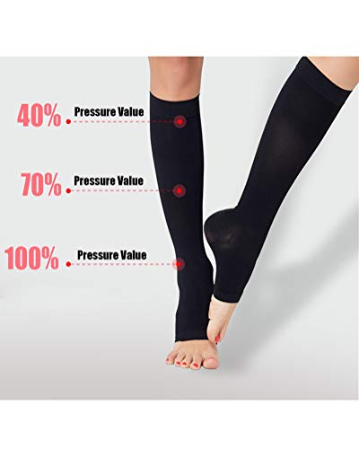 Compressione Graduata Forte| Gambaletto Contenitivo Calze Elastiche,Nero Open-Toe,S