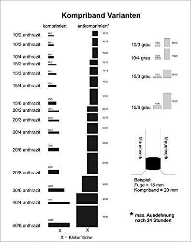 4,3 m compressione Band 20/8 larghezza di banda 20 mm, acrilico 300, expandiert di 8 su 40 mm, antracite, vorkomprimiertes autoadesiva Guarnizione Band kompri Band Fugendicht Band finestra Nastro sigillante QUELL Band