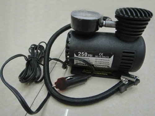 Compressore d'aria 250 psi 12 V, eccellente per emergenze stradali, perfetto per auto, moto. E gonfiabile, 2 adattatori per ugelli e ago sportivo, colore: nero, DC: 12 V, peso: 250 psi