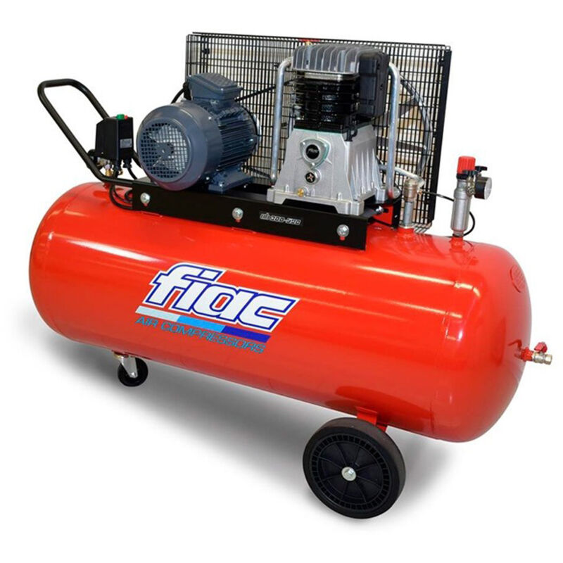 L'esperto lo raccomanda per SoffiareGonfiareSparare ChiodiVerniciareAvvitatore pneumaticoDescrizione prodottoIl compressore FIAC AB 300-598 T con trasmissione a cinghia, indicato per un utilizzo professionale di tipo industriale o artigianale, dispone di un potente motore elettrico trifase a induzione da 5,5 Hp che si distingue per la sua longevità e per lo scarsissimo grado di manutenzione di cui necessita.Il regime di rotazione di soli 1.270 giri al minuto consente un attrito minimo delle parti meccaniche oltre a garantire una ridotta temperatura di esercizio e una basso livello di rumorosità.Il gruppo pompante lubrificato a olio è di tipo bistadio (la compressione dell'aria avviene in due fasi) con 2 cilindri in ghisa e una capacità di aspirazione aria di 600 l/minuto.Un collettore di raffreddamento è posizionato su un lato per mantenere bassa la temperatura dell'aria che tende a salire in seguito al processo di compressione. L'aria compressa è immagazzinata in un serbatoio da 270