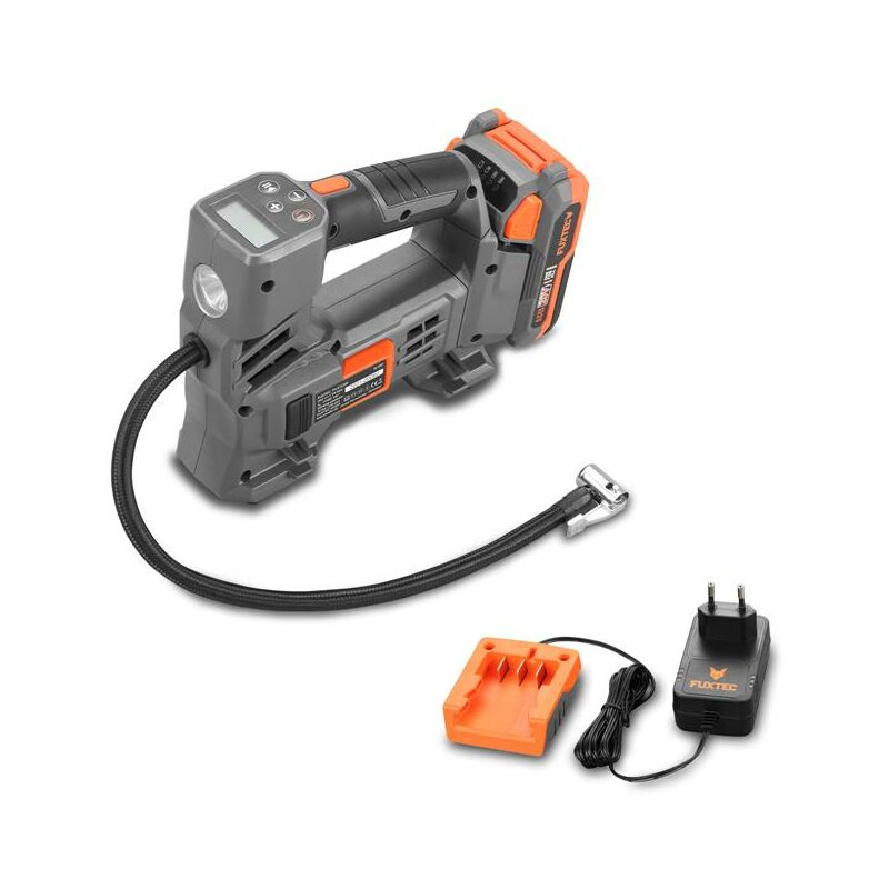 NUOVO Compressore a batteria 20V FX-E1CI20 con 1 batteria 2Ah e caricabatteria 1A Il compressore cordless FUXTEC da 20 V semplifica molte attività nell' uso privato e quotidiano. Sia che si tratti di riempire i materassi ad aria durante il prossimo viaggio in campeggio, di rimuovere lo sporco nel vano motore o di gonfiare gli pneumatici di una bicicletta o di un' auto. Il nostro sistema " una batteria per tutti" consente un avvio facile e conveniente nella tecnologia delle batterie da giardino di FUXTEC. Anche il compressore fa parte della nostra linea " una batteria per tutti", avvio semplice e conveniente con la tecnologia delle batterie di FUXTEC. La nostra linea 20V comprende un' ampia varietà di attrezzi da giardino, nonché i nostri attrezzi e utensili elettrici per ogni fai-da-te. Il compressore a batteria della nostra linea 20V è facile da maneggiare e particolarmente silenzioso. La linea cordless 20V di FUXTEC offre anche la seguente selezione di dispositivi: Motoseghe