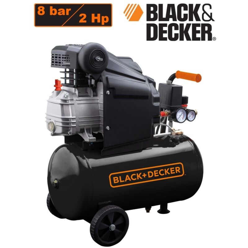 Progettato per un uso sia domestico che professionale, il Compressore 24lt. ad olio BLACK&DECKER - BXCM0031E offre una disponibilità immediata di aria compressa e la possibilità di utilizzare vari utensili ed accessori pneumatici. Adatto ad un gran numero di applicazioni: gonfiaggio, soffiaggio, verniciatura a spruzzo, chiodatura, graffatura, lavaggio, avvitatura, ecc. Gruppo pompante di qualità, realizzato con materiali superiori che garantiscono elevata affidabilità e resistenza all'usura. - Alimentazione (V/Hz): 230/50 - Potenza (hP): 2 - Giri motore (n./min): 2850 - Nr. cilindri: 1 - Capacità di aspirazione (l/min): 210 - Capacità serbatoio (l): 50 - Pressione d'esercizio max. (bar): 8 - Numero cilindri: 1 - Lubrificato: Si - Tipo Pompa: RC2 - Dimensioni imballo (mm) LxPxA: 570x580x250 - Peso (Kg): 24,6