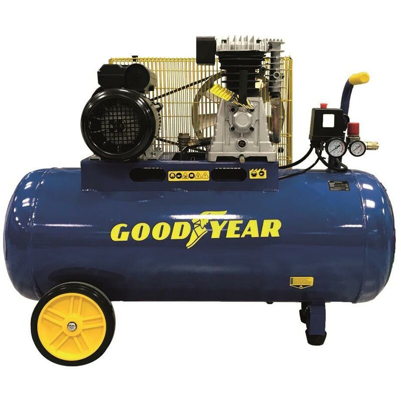 Il compressore d'aria GOODYEAR GY3100B è uno strumento davvero indispensabile, sia in una falegnameria che in un'officina meccanica. In un garage o in una stazione di servizio, viene utilizzato principalmente per infondere gli pneumatici con l'aria necessaria o controllare la quantità di aria in essi contenuta. Viene anche utilizzato per dipingere, spellare, forare, incidere e persino soffiare. Grazie ad un compressore d'aria puoi levigare superfici piane collegandolo con una levigatrice pneumatica. Insieme a una chiodatrice pneumatica, puoi fissare i chiodi su un pavimento di legno. Questo dispositivo fornisce anche un prezioso aiuto per rimuovere la polvere dagli angoli difficili da raggiungere. Monta un motore elettrico con una potenza di 3 HP, ha una capacità di aspirazione aria compressa di 397 litri d'aria al minuto, può esprimere una pressione massima di 10 bar. Dispone di un capiente serbatoio di accumulo aria compressa di 100 litri. Pesa 70 kg e può essere trasportato