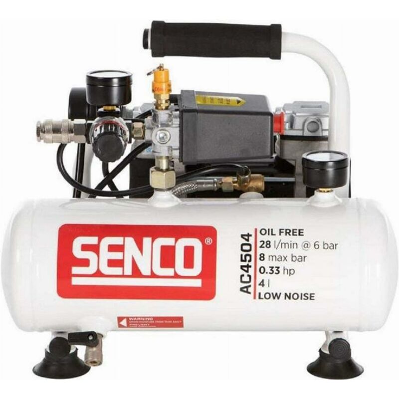 Dettagli: il compressore AERFAST AC4504 è un modello discreto, performante, compatto e portatile. Discreto Compatto e stabile Compressore particolarmente discreto. Ultra portatile = maniglia tubolare. Leggero = può essere portato ovunque. Compatto = nessun organo sensibile è esposto. Senza olio = perfetto per i lavori di finitura. Peso 10,5 kg Dimensioni 370x330x350 mm Serbatoio 4 l. Potenza 0,33 CV / 0,24 kW Volume aria aspirata 45 l/min Volume d'aria restituito 32 l/min a 6 bar. Fornitura di aria compressa di attrezzature di chiodatura, di finitura, di imbottitura, isolamento... Velocità: 1420 m/s Pressione 6 -8 bar Livello sonoro 58 dB