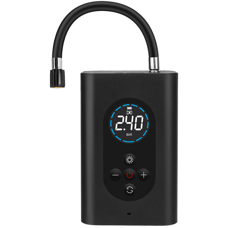 Il compressore d'aria è appositamente progettato con un cilindro in metallo ab, basta premere il pulsante per gonfiare, tempo e risparmio di manodopera. Display LCD digitale per una facile lettura. Oltre a luci LED luminose e di lunga durata, facili da usare anche al buio. Può anche fungere da power bank per caricare i tuoi cellulari. Le dimensioni compatte sono ottime da portare con te durante i tuoi tour di guida, usalo ogni volta che ne hai bisogno. Specifiche: < br /> Materiale: lega di alluminio Colore: nero Tensione: DC 5V Corrente di ingresso: 2A Corrente di uscita: 1A Lumen: 80 lumen Capacità della batteria: 2 x 2000 mAH Pressione massima: 150 PSI / 10,3 bar Dimensioni del prodotto: 118 * 78 * 50 mm / 4,6 * 3,1 * 2,0 pollici Lunghezza del tubo: 17 cm / 6,7 pollici Peso del prodotto: ;