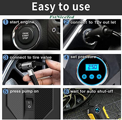 Multifunzionale: questa pompa portatile per pneumatici viene fornita con adattatori multipli per ugelli, oltre a gonfiare pneumatici per auto, il gonfiatore può anche gonfiare pneumatici per biciclette, pallacanestro, palloni da calcio, giocattoli gonfiabili, kayak, ecc.