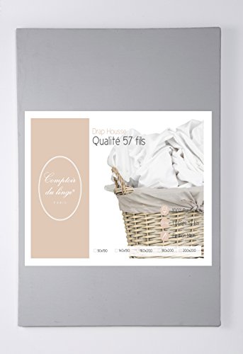 Comptoir du Linge lenzuola singolo singolo Tinta Unita Cotone Grigio Perla 200 x 140 cm