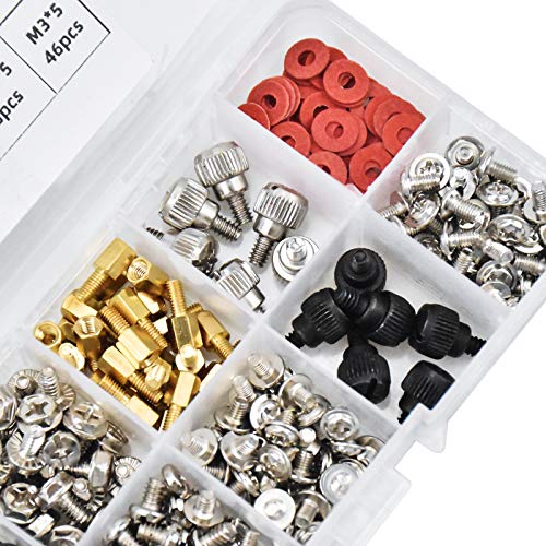 【Specifiche】: Compresi distanziatori della scheda madre da 24 pezzi in ottone M3 * 6 + 6, viti di fissaggio della scheda madre da 46 pezzi M3 * 5, 48 pezzi di rondella isolante della scheda madre M3 * 8, viti di azionamento da 43 pezzi M3 * 4, viti per disco rigido da 43 pezzi M3.5 * 5, viti ad alette M3.5 * 6 (metallo * 6 pezzi / plastica * 6 pezzi), 30 pezzi di case PC viti di fissaggio ad alta resistenza M3.5 * 6, viti di fissaggio ventola M5 * 10 ( metallo * 24 pezzi, plastica * 30 pezzi).