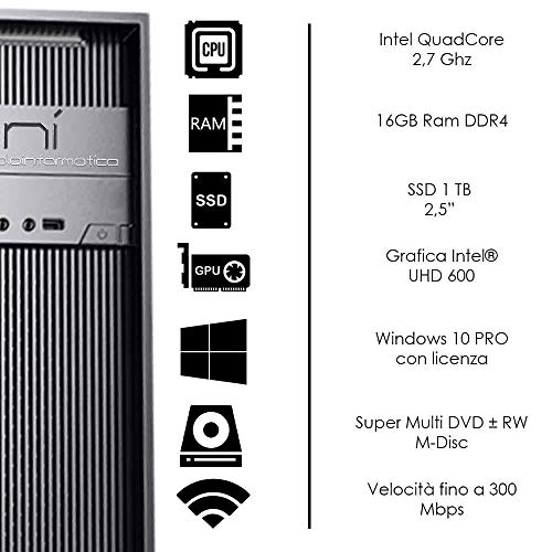 Computer fisso assemblato intel quad-core 16gb ram DDR4 1tb ssd windows 10 pro wifi incluso hdmi