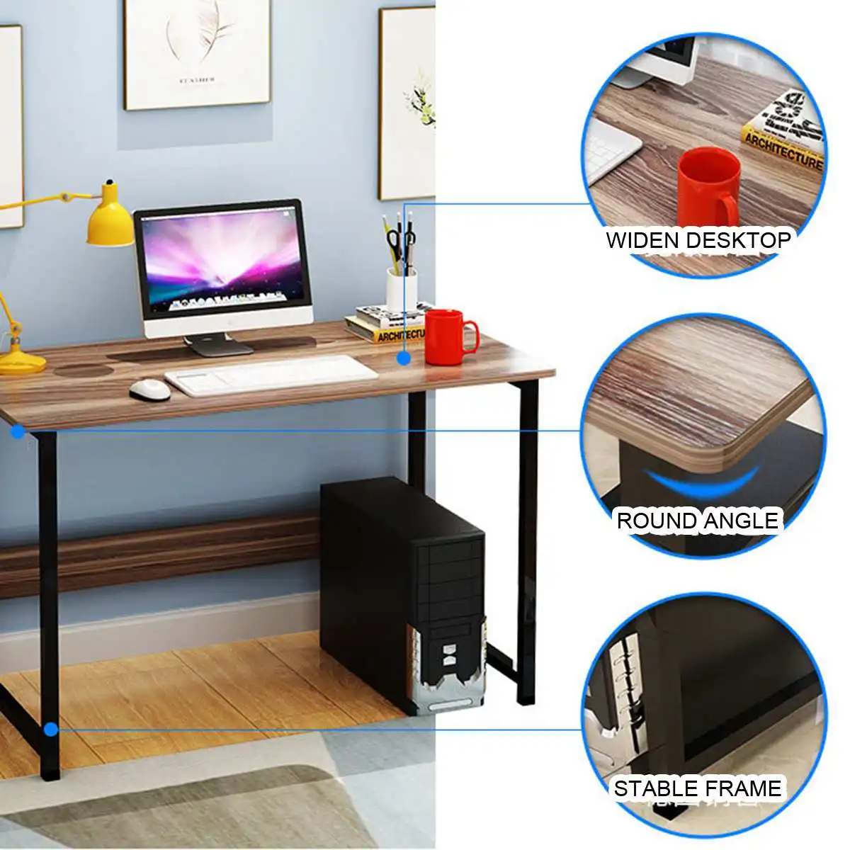 Computer Laptop Desk Modern Style Computer Table with Bookshelf Wooden Standing Desks Round Edge for Home Office Living Room