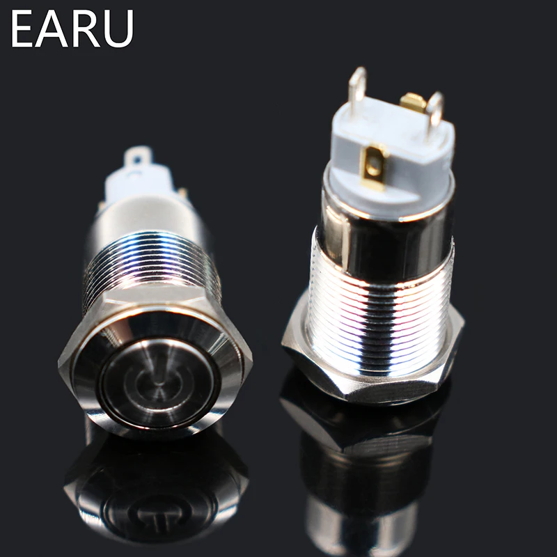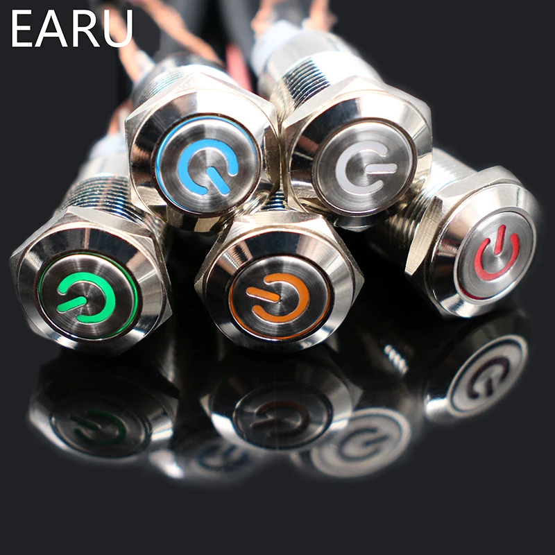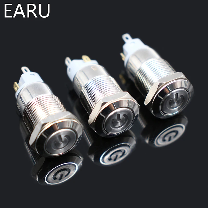 1pc Car Computer 12mm Latching Angel Eye Aluminum Metal LED Power NO Push Button Switch Self-locking Metal Switch Normally Open