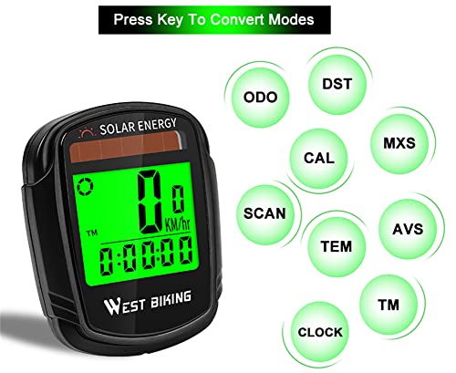 Bike Computer, Senza Fili Della Bici Del Tachimetro Della Bicicletta di Energia Solare Contachilometri Cronometro con Retroilluminazione, multi-Funzione Cycling Computer per Strada e Mountain Bike