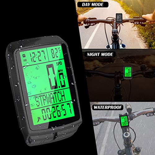Design impermeabile: con retroilluminazione verde, display LCD digitale con pulsanti sensibili e funzione impermeabile, il computer della bicicletta è facile da leggere giorno e notte, anche se piove, non danneggerà il tachimetro della bicicletta.