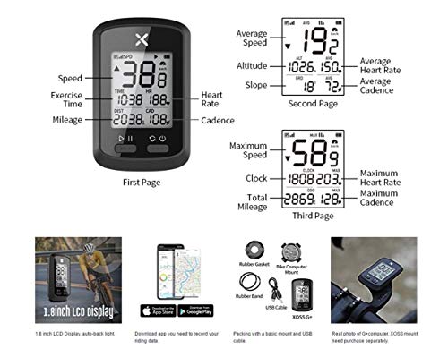 XOSS Bike Computer G+ Wireless GPS Speedometer Waterproof Road Bike MTB Bicycle Bluetooth Ant+ with Cadence Cycling Computers(Standard Pack)
