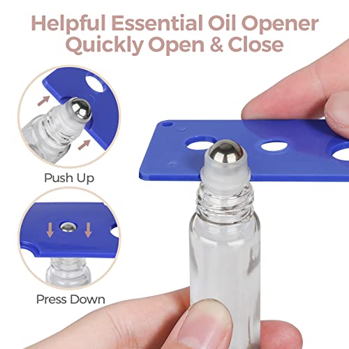 [Kit super valore] L'intero set viene fornito con 24 confezioni di bottiglie di vetro trasparente da 10 ml con tappo, 30 rulli in acciaio inossidabile, più 20 etichette extra, 2 imbuti, 2 contagocce e 2 apri. Soddisfa completamente il tuo divertimento di miscele di olio fai da te, deodoranti, profumi, balsamo per le labbra e altri usi cosmetici.