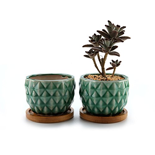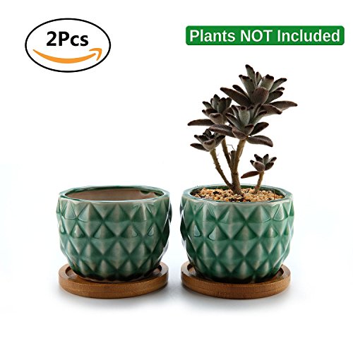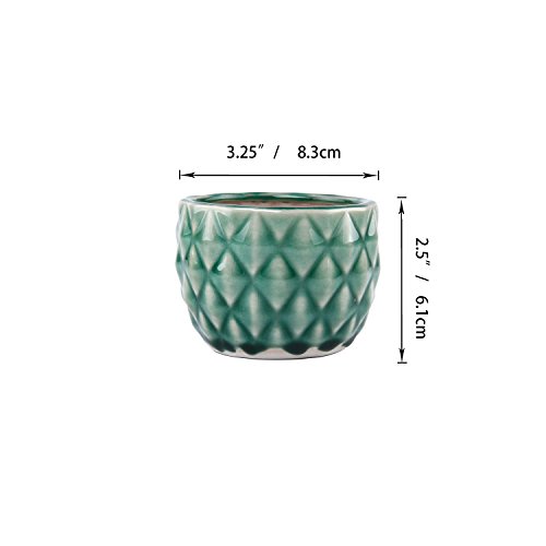 ComSaf Vaso per Pianta Grassa Vaso di Piante con Vassoio di Verde 8.3CM Ceramica Forma di Ananas Set di 2, Fioriere di Cactus Contenitori Vasi di Fiori Decorativo del Desktop Davanzale