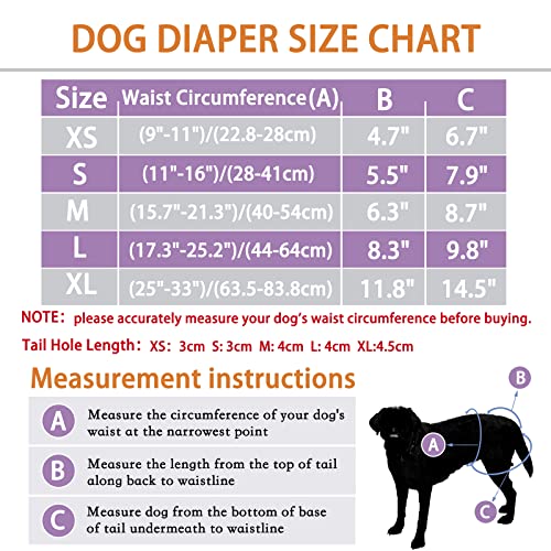 Scelta delle taglie: ogni confezione ha 3 pannolini, 5 taglie per riferimento: XS (vita 22,9 - 27,9 cm), S (vita 27,9 - 40,6 cm), M (vita 39,9 - 54,1 cm), L (vita 43,9 - 64 cm), XL (vita 63,5 - 83,8 cm, adatto per cuccioli torte e cani grandi, medi e piccoli, come Chihuahua, Yorkie, ecc. Si prega di considerare errori nella misurazione manuale. Se si tratta di un cane di grandi dimensioni, si consiglia di non misurare troppo strettamente. Si consiglia vivamente di misurare la circonferenza della vita del cane prima dell'acquisto per garantire la migliore vestibilità.