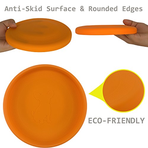 COMSUN 2PZ Giocattolo Cani, 7 Pollici Dischi Volanti Atossici Resistenti in Gomma Naturale per Addestramento Cane Animali Domestici - Arancio & Verde