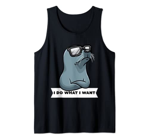 Il design presenta una grande grafica di una foca testarda che dice "I Do What I Want!".