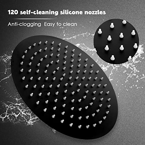 COMVIDA Soffione Doccia Tondo Soffioni Doccia a Pioggia 10 Pollici in Acciaio Inox Soffione Doccia Ultrasottile Pioggia ad Alta Pressione con Getti in Silicone Anticalcare,Nero,CV-50021-N