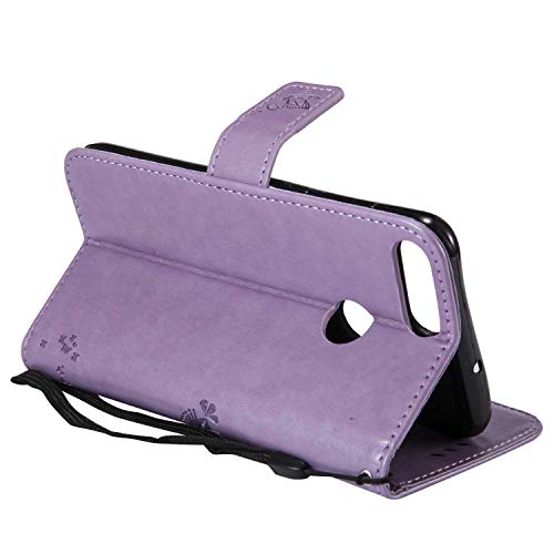 Conber Cover per Huawei P Smart 2018 / Huawei Enjoy 7S, Custodia in Pelle PU con Interno TPU Antiurto, Flip Case Cover Custodia Portafoglio per Huawei P Smart 2018 / Huawei Enjoy 7S - Lavanda