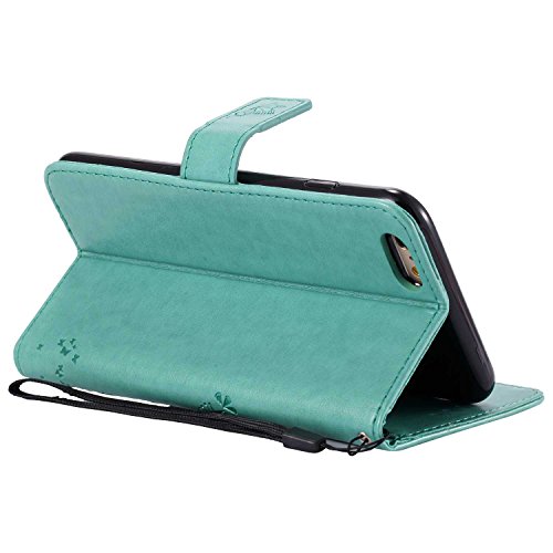 Conber Cover per iPhone 6 Plus/iPhone 6S Plus, Custodia in Pelle PU con Interno TPU Antiurto, Serie Gatto e Albero Flip Case Cover Custodia Portafoglio per iPhone 6 Plus/iPhone 6S Plus - Verde