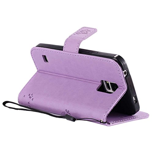 Conber Cover per Samsung Galaxy S5, Custodia in Pelle PU con Interno TPU Antiurto, Serie Gatto e Albero Flip Case Cover Custodia Portafoglio per Samsung Galaxy S5 - Lavanda