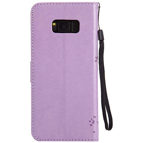 Conber Cover per Samsung Galaxy S8 Plus, Custodia in Pelle PU con Interno TPU Antiurto, Serie Gatto e Albero Flip Case Cover Custodia Portafoglio per Samsung Galaxy S8 Plus - Lavanda