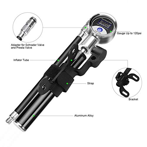 ConBlom Kit di Mini Pompa per Pneumatici da Bicicletta, Kit di Riparazione per Biciclette con Pompa di Riparazione Digitale con Display Portatile per la Riparazione di Pneumatici per Mountain Bike