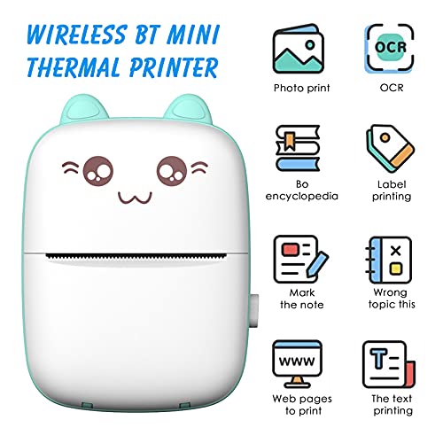 ConBlom Mini Stampante Fotografica, Stampante Termica per Etichette con Ricarica USB Stampante fotografica wireless Bluetooth portatile con 10 rotoli di carta termica per Android iOS (Bianco-verde)