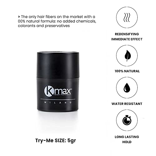 Kmax Concealing Hair Fibers - Fibre Cheratina per Capelli, Polvere Capelli per un Effetto Infoltimento Capelli, Fibre Capelli per Coprire le Calvizie - Formato Try Me da 5 gr - Castano Medio