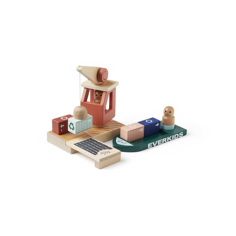 Dettagli del prodotto: Età: da 24 mesi Il porto dei container AIDEN è ideale per un gioco di ruolo. Sollevare i container usando solo il gancio magnetico della gru richiede coordinazione e favorisce la motricità fine La gru può ruotare di 360 gradi e può essere sollevata e abbassata con il pulsante laterale Stimola l'immaginazione e favorisce lo sviluppo delle abilità linguistiche e sociali. Dimensioni e peso: Dimensioni da assemblato (lunghezza x larghezza x altezza): 23,5 x 19,5 x 19 cm Peso: 1,04 kg Materiale e cura: Materiale: compensato, betulla, schima, MDF, acciaio, poliammide, poliestere. Incluso nella consegna: 1 nave container 1 x area portuale in due parti 1 gru con gancio magnetico 4 x container 2 figure