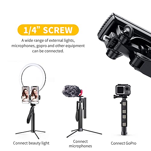 【Interfaccia standard da 1/4 di pollice】Treppiede selfie portatile con una interfaccia standard da 1/4 di pollice, può essere collegato a mini flash, luce di riempimento, microfono e altri dispositivi, più ampiamente utilizzato per video, Youtobe, Vlog, Blog, Tiktok.