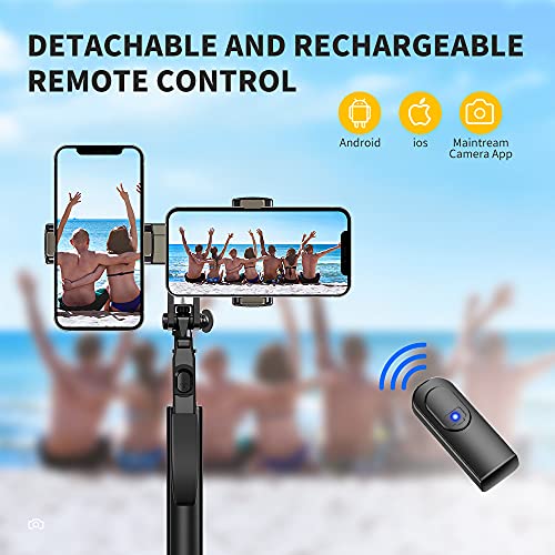 【Telecomando Bluetooth stile maniglia】 Treppiede per cellulari ha una maniglia Bluetooth wireless per le riprese video a bilanciere e supporta anche il telecomando Bluetooth (USB RICARICA)staccabile, permettendoti di scattare facilmente foto o video da una distanza di 10 metri/ 30 piedi, compatibile con la maggior parte degli smartphone Apple/Android senza scaricare un'app.