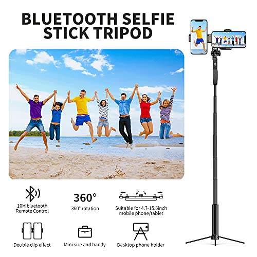 【Due clip del telefono】: Bastone Selfie può essere compatibile con due telefoni allo stesso tempo, può ruotare 360 °, uno posto orizzontalmente, uno posto verticalmente, multi-angolo per le riprese, naturalmente, Palo selfie anche è compatibile con ipad, quindi avete più opzioni.