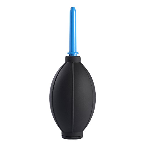 Air blower directs a powerful stream of air to blow away dirt and dust from cameras, lenses and other photographic equipment.
