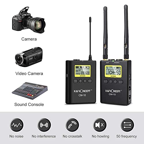 K&F Concept Microfono Wireless 100m,Microfono Lavalier con 2 Trasmettitori e 1 Ricevitore, Microfono Fotocamera Dslr per Video, Intervista,Registrazione,TikTok,Youtobe