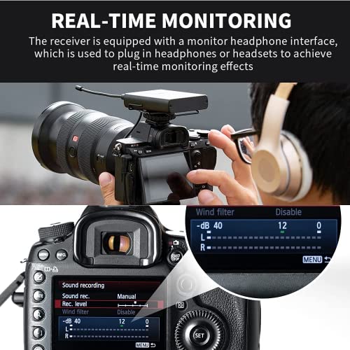 【MONITORAGGIO IN TEMPO REALE】Funzione di monitoraggio in tempo reale sul ricevitore, è possibile collegare le cuffie per monitorare e verificare se il dispositivo wireless funziona correttamente durante il processo di registrazione, per completare la registrazione in una volta, fornirà più professionale e registrazione conveniente.