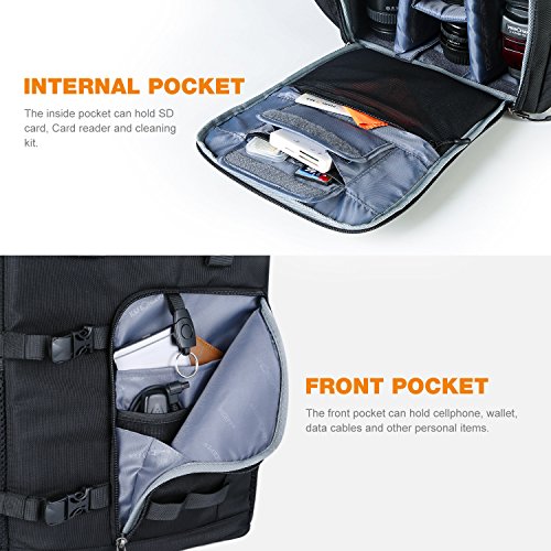 K&F Concept Zaino per fotocamera Zaino da viaggio zaino zaino per fotocamera con 2 pacchetti estraibile, 46*29*16 cm