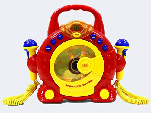 Concerto-Lettore CD Sing A Long, Box per bambini e adolescenti, impianto karaoke portatile con 2 microfoni per cantare, con display LED, ripetizione e collegamento cuffie, colore: rosso/giallo, 715502