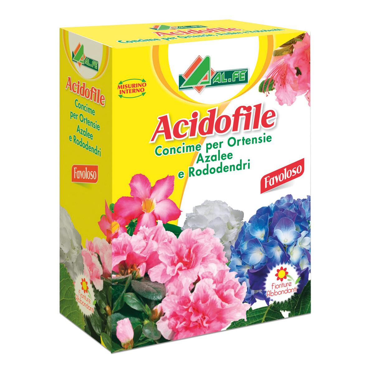 ACIDOFILE è il concime minerale granulare ideale per tutte le piante acidofile: azalee, ortensie, rododendri, camelie, gardenie, eriche ecc. La formulazione specifica garantisce la condizione ideale per uno sviluppo rigoglioso delle piante con fioriture abbondanti, durature, ricche di colori intensi e brillanti.. Facile da usare: 15 g (mezzo misurino) per vasi di 24 centimetri di diametro. Ideale per tutte le piante acidofile: azalee, ortensie, rododendri, camelie, gardenie, eriche ecc. Concime NPK (S) 11-7-16 (15) con Ferro e Zolfo. Il particolare titolo nutrizionale garantisce fioriture abbondanti. Ricco in Zolfo per acidificare il terreno