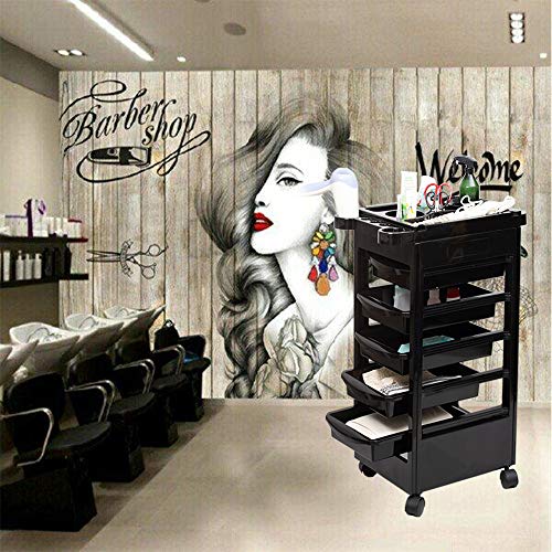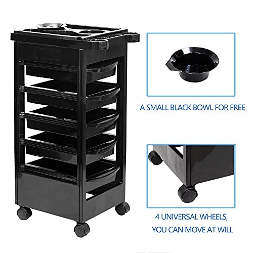 Concise Home Carrello da Parrucchiere Carrello da Barbiere Carrello da Lavoro con Ruote, con 5 Cassetti Carrello da Salone per Salone di Bellezza, Nero