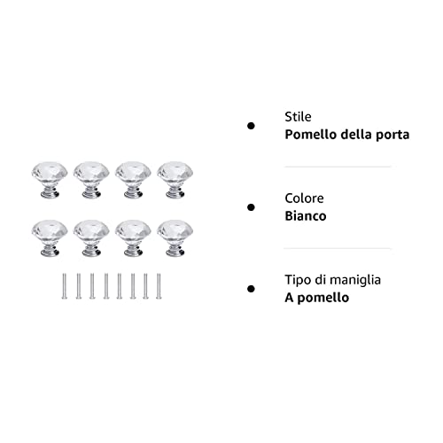 Concisea Pomelli per porta a diamante, 8 pezzi, 30 mm, in cristallo di vetro diamantato con viti per mobili per armadi a cassetti decorazione della cucina(bianco)