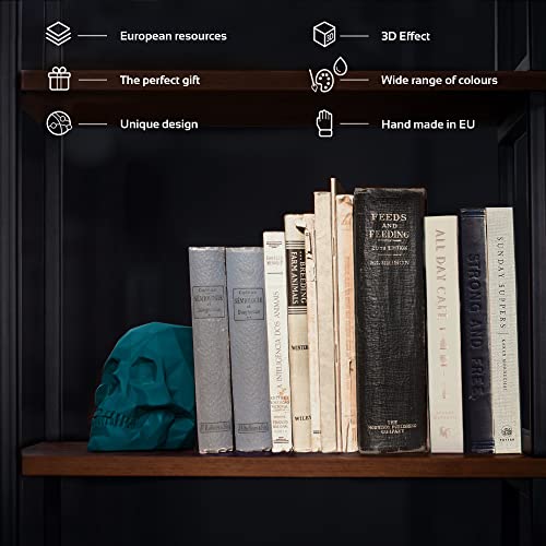 Concrette Fermalibri Skull Low-Poly Teschio in cemento architettonico - Supporto per libreria contabile - Fermalibri decorativi per scaffali - 1 pezzo